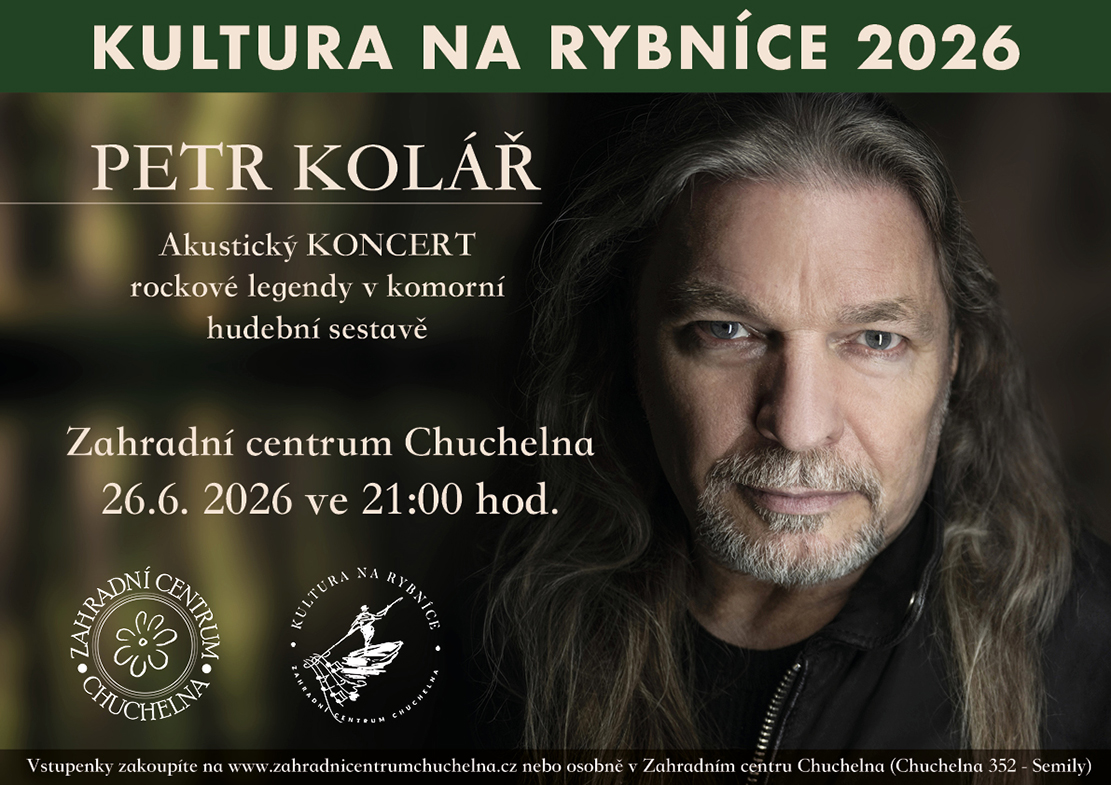 V rámci letního cyklu Kultura na Rybníce 2026 vás zveme na nezapomenutelný hudební zážitek. Do Zahradního centra Chuchelna zavítá jedna z nejvýraznějších postav české rockové scény – Petr Kolář.